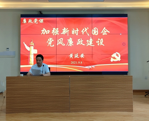 9月8日,公司党委开展2021年党风廉政建设“宣教月”专题党课会。会上,公司党委书记、董事长黄延安同志讲授主题为《加强新时代国企党风廉政建设》的廉政专题党课。